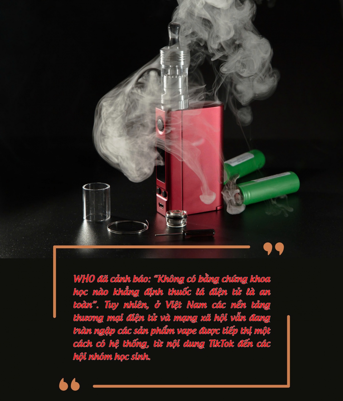 WHO đã cảnh báo: “Không có bằng chứng khoa học nào khẳng định thuốc lá điện tử là an toàn”. Tuy nhiên, ở Việt Nam các nền tảng thương mại điện tử và mạng xã hội vẫn đang tràn ngập các sản phẩm vape được tiếp thị một cách có hệ thống, từ nội dung TikTok đến các hội nhóm học sinh. Não bộ của trẻ vị thành niên nhạy cảm gấp nhiều lần với nicotine, dẫn tới nghiện nhanh hơn, sâu hơn và khó bỏ hơn. Nhiều bạn trẻ dùng vape vài tuần rồi phải mang theo mỗi ngày, hút bất kỳ lúc nào. Khi thiếu nicotine, các em trở nên bứt rứt, mất tập trung, dễ lo âu và dễ cáu gắt… Đây là biểu hiện đặc trưng của nghiện chất. Thực tế, tại các trường học cho thấy nhiều học sinh trung học đã nghiện vape, bỏ học để lao động kiếm tiền mua thiết bị. Nhiều em trầm cảm, hoảng loạn, mất ngủ, mất kiểm soát hành vi do lạm dụng nicotine trong thời gian dài. Một số trường hợp phải nhập viện vì suy hô hấp cấp, viêm phổi hóa học, thậm chí có nguy cơ tử vong. Đáng sợ hơn, từ thuốc lá điện tử, nhiều em dễ dàng chuyển sang cần sa điện tử, ma túy tổng hợp khi cảm giác được “thoả mãn” với nicotine không còn đủ mạnh. Vì không có mùi khét như thuốc lá điếu, không để lại tro, không cần bật lửa, thuốc lá điện tử trở thành “ẩn họa vô hình”. Phụ huynh không phát hiện, nhà trường không kiểm soát, pháp luật chưa kịp điều chỉnh và ngành công nghiệp thuốc lá thì “âm thầm” mở rộng thị phần. Nếu không có hành động ngay lúc này, chúng ta đang để một thế hệ lớn lên trong khói độc, không phải của sự đốt cháy, mà của sự ngụy trang tinh vi. Nếu ngày trước chúng ta run sợ vì làn khói thuốc của bố, thì hôm nay chúng ta lặng người trước làn khói trái cây của con. Không còn tiếng ho, không còn mùi khét mà chỉ còn những lá phổi âm thầm đen lại, những giấc mơ học trò biến mất trong hơi khói lấp lánh và những sinh mạng trẻ trung đang gục ngã trong “hợp thức hóa” độc hại. Đừng để thuốc lá điện tử trở thành cái giá mà chúng ta phải trả bằng cả một thế hệ. Hãy hành động. Bây giờ.
