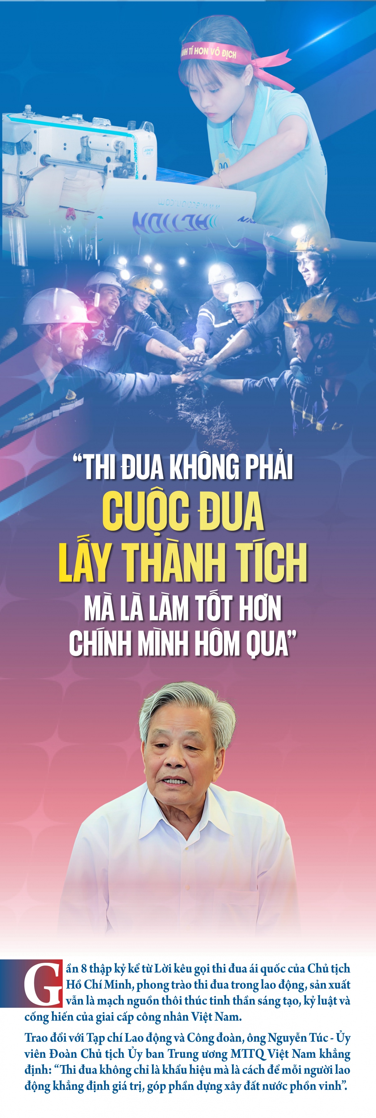 - Chúng ta đang sống trong thời kỳ cạnh tranh toàn cầu, nơi mà năng suất, chất lượng và hiệu quả là những yếu tố quyết định vị thế quốc gia. Trong bối cảnh ấy, phong trào thi đua chính là một hình thức giáo dục chính trị - tư tưởng sinh động nhất, góp phần hình thành nhân cách của người lao động mới: Có ý thức kỷ luật, có trách nhiệm, có lòng tự trọng nghề nghiệp.