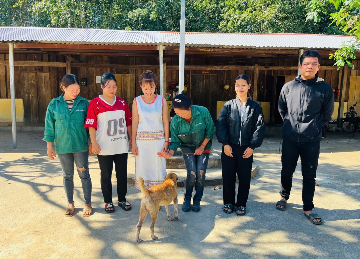 Chị Hiền (áo xanh) bên căn nhà những ngày đầu được chọn làm nhà giữ trẻ của Đội 7 nay được phân cho một hộ công nhân ở.