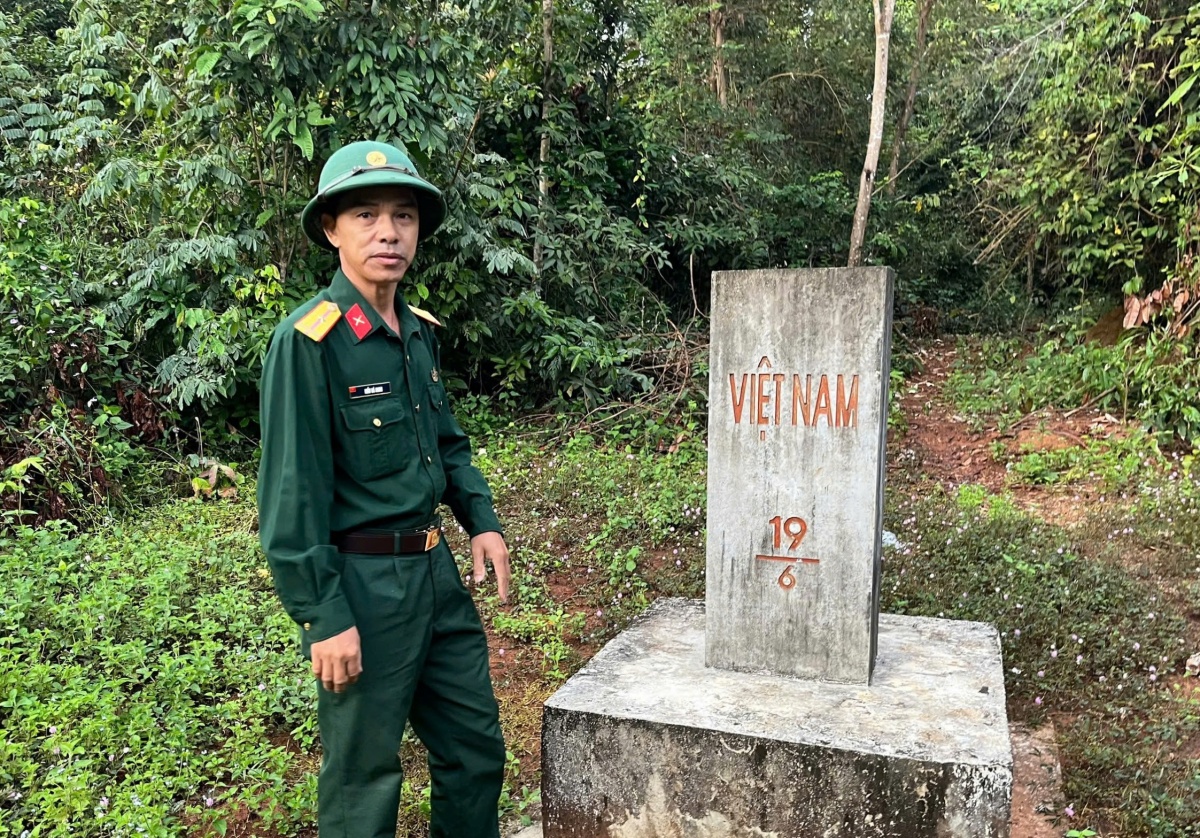 Thiếu tá Kiều Bá Oanh bên cột mốc quốc gia kề lô cao su của đội. Đội 7 cũng có đội tuần tra bảo vệ đường biên cột mốc gồm 4 đồng chí, hằng tháng tổ chức tuần tra, phát cỏ trên đường vào các mốc chính và mốc phụ. Ngoài nhiệm vụ sản xuất kinh doanh, họ đã góp phần bảo vệ biên cương.