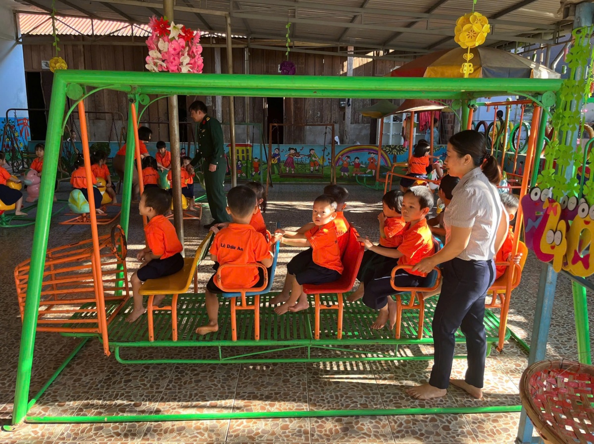 Nhiều trường mầm non đã được các đơn vị thuộc Binh đoàn 15 dựng lên với những điểm trường bám sát các đội sản xuất để tạo điều kiện thuận lợi cho công nhân bám vùng biên, gắn bó với cây cao su.