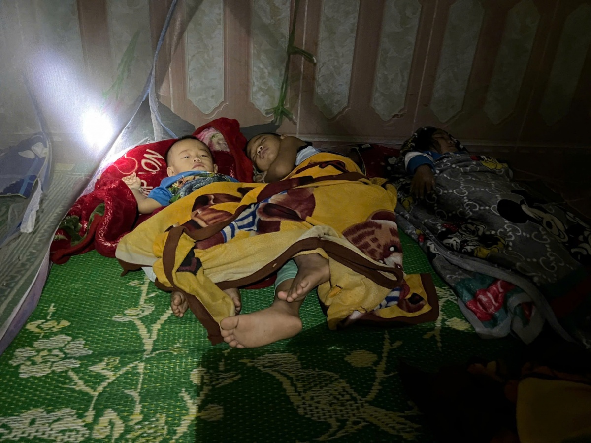 Trẻ em được trông ban đêm tại điểm trường để bố mẹ ra lô cao su làm việc.