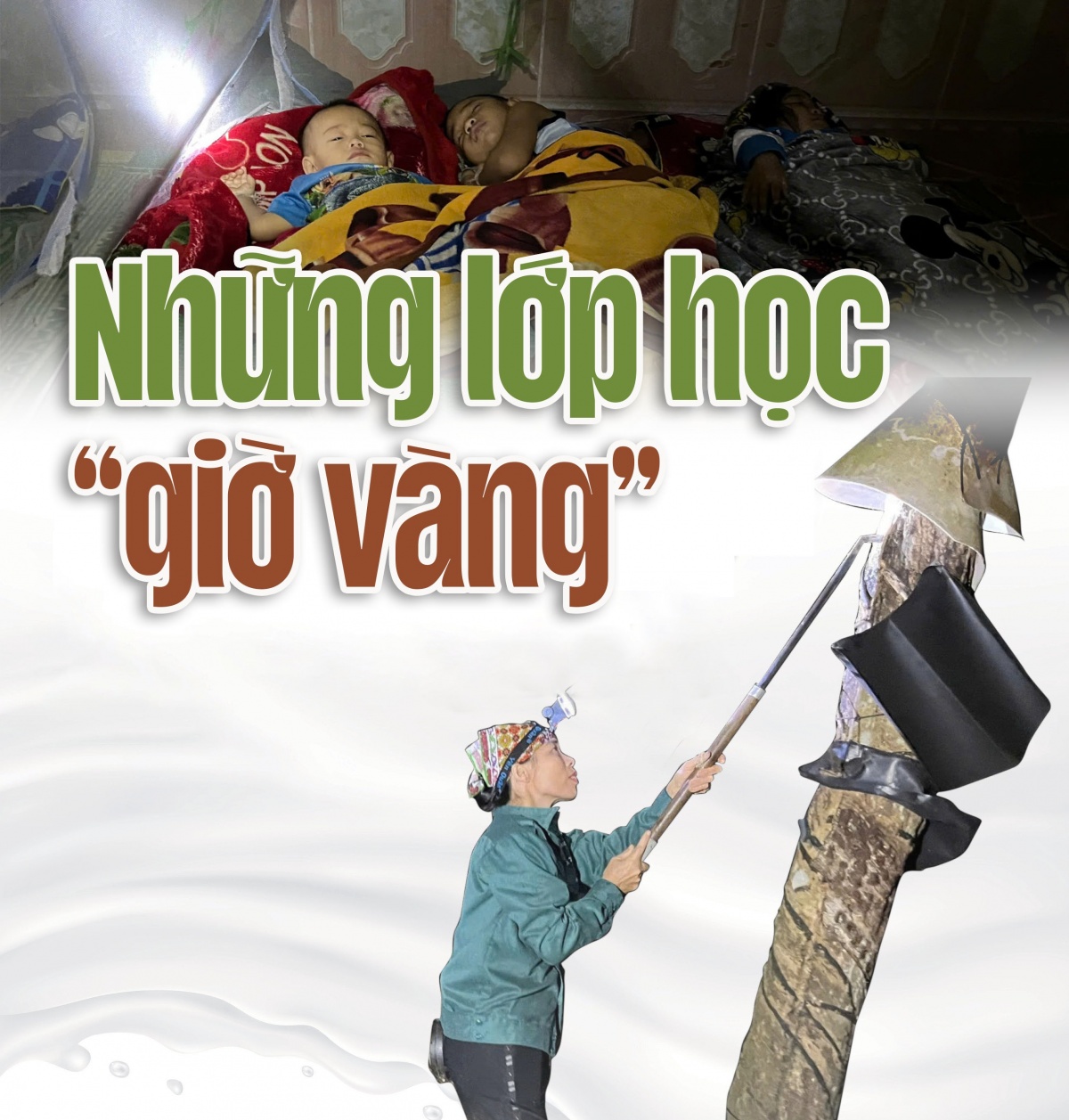 | 11 giờ đêm chúng tôi lên xe từ trụ sở chi nhánh xuất phát hướng về Đội sản xuất số 7. Chị Phùng Thị Hiền, Chủ tịch Hội phụ nữ cơ sở, nhân viên Ban Chính trị của Chi nhánh 716 (Kon Tum) úp mở bảo “các anh phải bắt bằng được cái giờ vàng này”. “Giờ vàng” theo chị Hiền nói là một hiện tượng khá đặc biệt của người công nhân cao su Chi nhánh 716 cũng như các đơn vị khác của Binh đoàn 15, ấy là giờ đưa trẻ đến trường lúc nửa đêm. Chiếc xe 7 chỗ chạy trên đường tuần tra biên giới vào lúc chuẩn bị sang ngày mới, đêm tối khiến tôi chẳng thể nhận ra bên nào là đất ta bên nào là đất bạn. Đi giữa rừng đêm vào thời khắc trước 0 giờ, tự nhiên tôi thấy xôn xao như thể đang đi đón giao thừa trước một năm mới. Chị Hiền bảo tôi: “Nhịp sống vùng biên của bọn em gắn liền với cây cao su, chả cứ người lớn, bọn trẻ con cũng phải làm quen với nhịp điệu cạo mủ từ khi còn bú đấy anh ạ”. Chưa từng làm công nhân ngày nào nhưng Hiền thuộc như bàn tay những công việc của người thợ cũng như vận hành của đội sản xuất, bởi chị đã từng là cô giáo mầm non của chính Đội sản xuất số 7. Bởi vậy Hiền muốn giới thiệu với chúng tôi về khoảnh khắc rất đặc trưng này của những công nhân cao su. Đường khá xa nên chúng tôi xuống hơi trễ, đã qua giờ gửi trẻ. Đồng hồ trên điện thoại của tôi đã sắp chạm mốc 12 giờ đêm, Hiền dẫn tôi qua trường mầm non. Khác với không khí rộn ràng, bi bô tiếng nói cười, tiếng hát của các lớp lá, lớp mầm, cả ngôi trường tịch mịch, vài bóng đèn le lói. Tôi đang băn khoăn thì Hiền ra hiệu giữ im lặng, chị rón rén hé cửa chỉ cho tôi những đứa trẻ đang ngủ ngoan cùng cô giáo. Tôi cũng vừa kịp hiểu, đúng rồi, nửa đêm ai lại bắt các cháu đến trường học múa hát hay chơi trò chơi bao giờ. Chúng đến trường chỉ để… ngủ. Những đứa trẻ sẽ được bố mẹ mang đến gửi vào… trước 12 giờ đêm, là giờ mà họ phải ra lô cao su để cạo mủ.