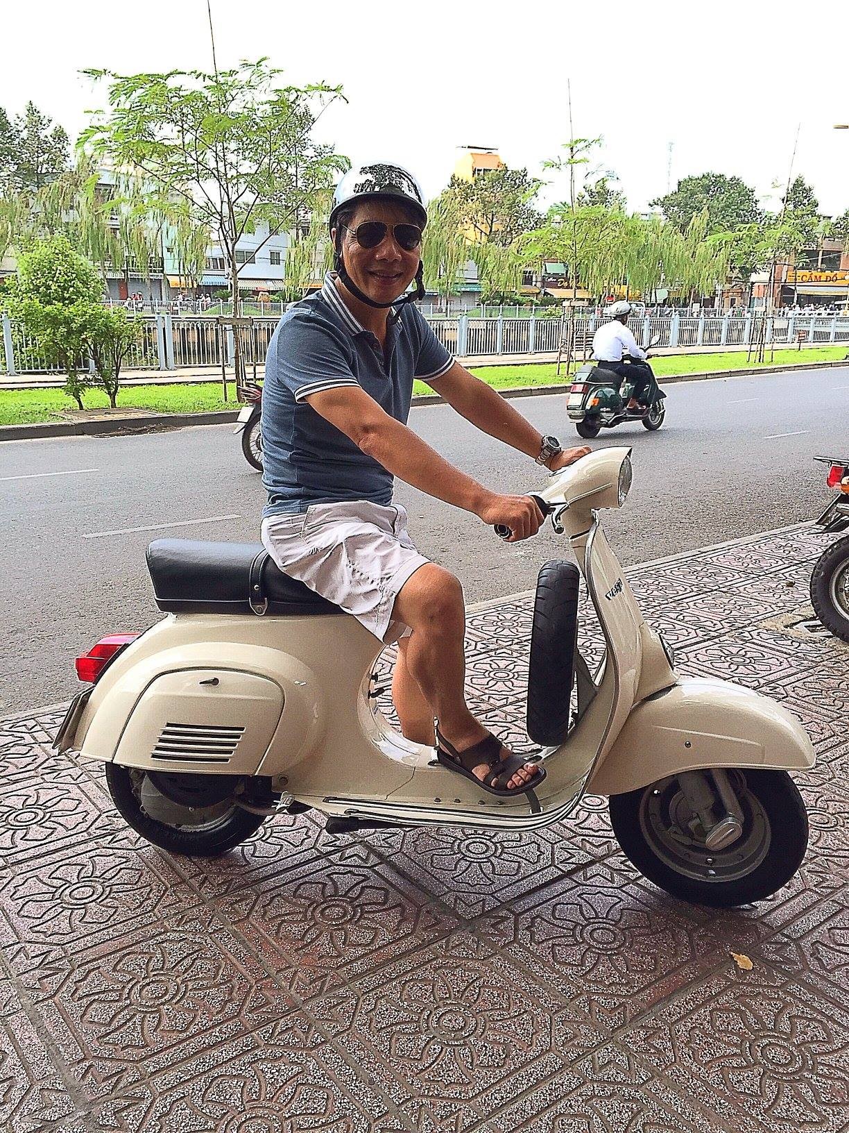 "Lúc đó người thấp chưa với được tới yên, mình leo lên cột điện, leo lên xe, bóp côn, vào số rồi chạy. Đến khi muốn xuống xe thì lại kè vào cột điện đổ mà bước xuống", anh Diên chia sẻ.