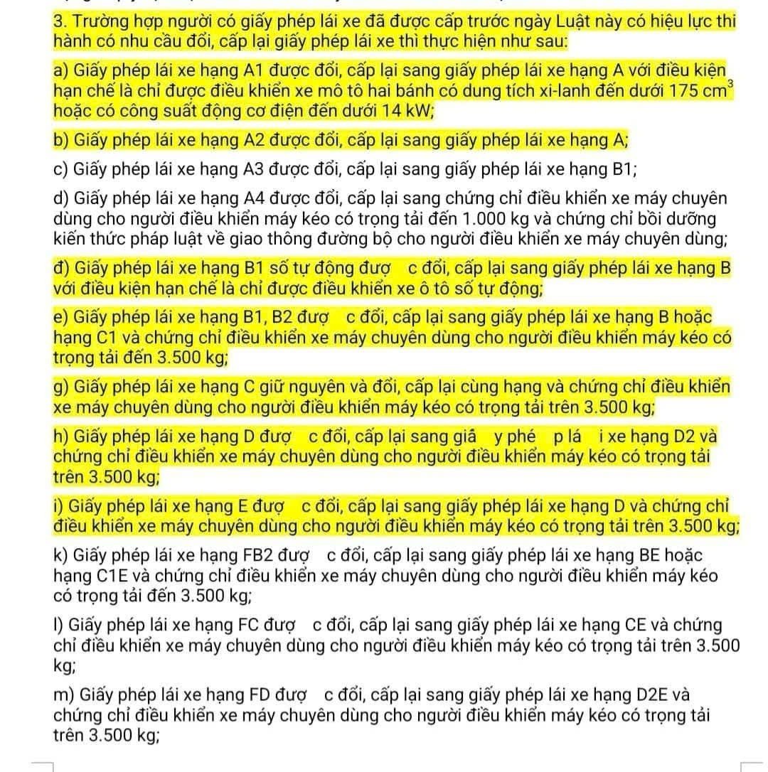 | Giấy phép lái xe hạng B1 không được điều khiển ô tô kể từ 1/1/2025 để thống nhất theo quy ước quốc tế. |