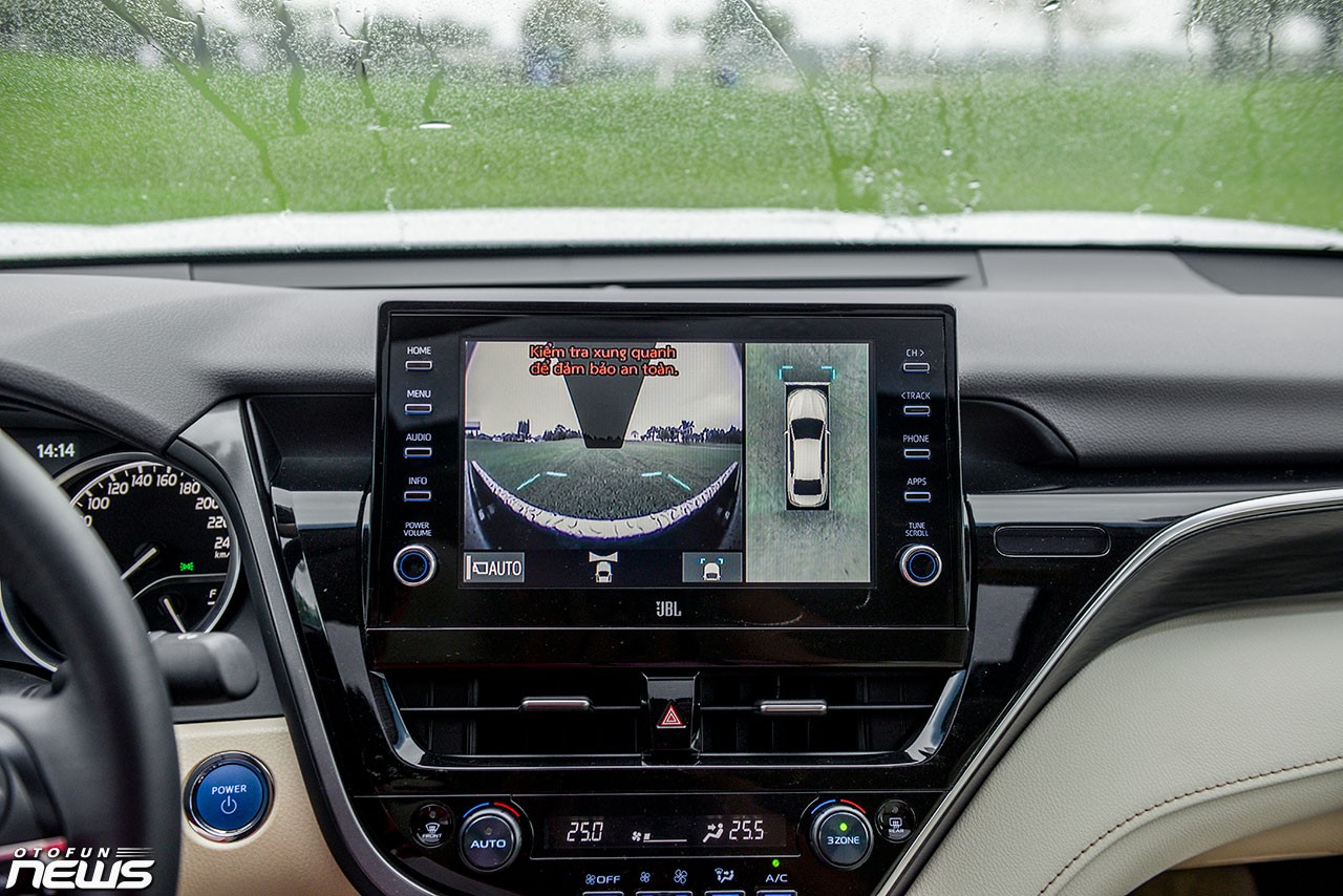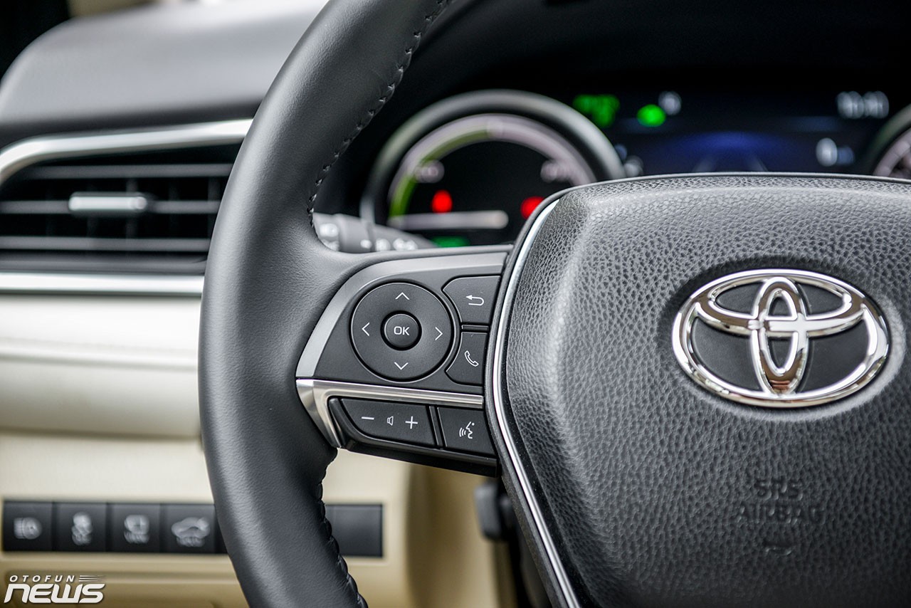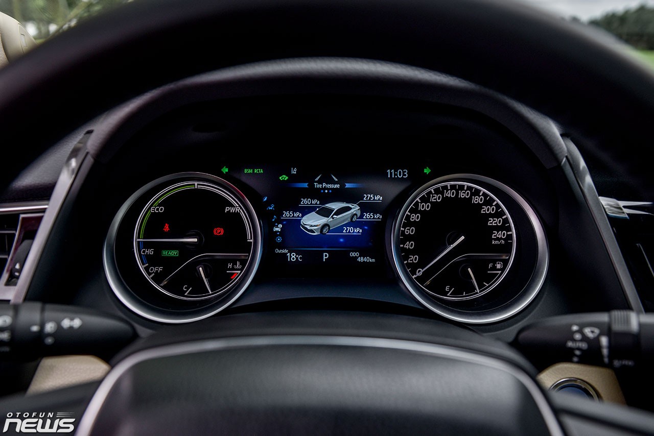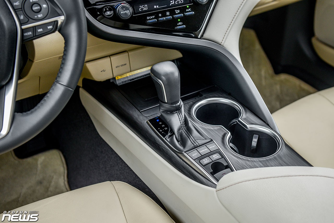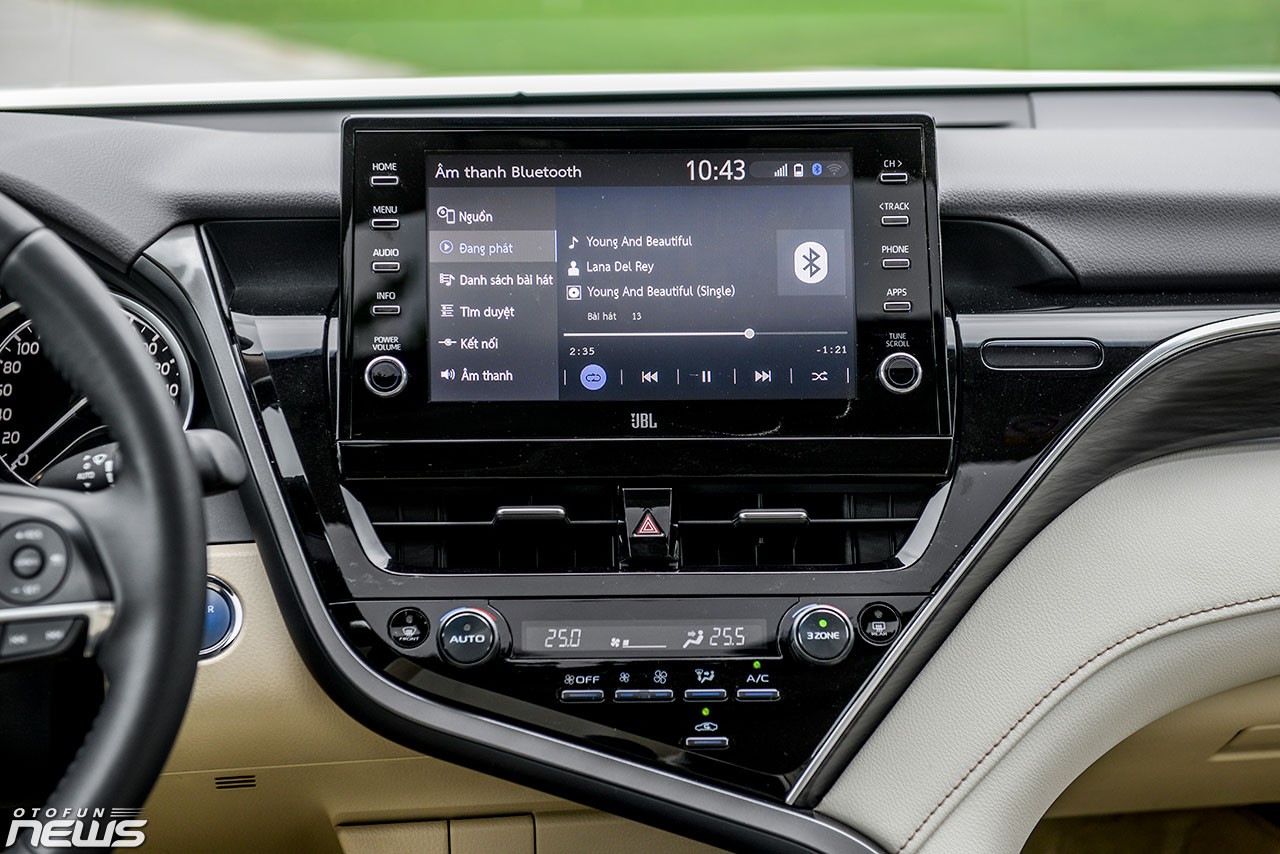 Nội thất Toyota Camry mang đến cảm giác tiện nghi, rộng rãi và sang trọng. Vô-lăng bọc da ba chấu chỉnh điện 4 hướng, tích hợp hàng loạt phím bấm chức năng. Đồng hồ hiển thị dạng analog với đồng hồ tốc độ bên phải và đồng hồ chỉ thị động cơ làm việc kết hợp màn hình hiển thị TFT 7 inch. Hệ thống giải trí sử dụng màn hình cảm ứng 9 inch, hỗ trợ kết nối bluetooth, Apple Car Play và Android Auto. Hệ thống này còn đi kèm dàn âm thanh 9 loa JBL. Một số tính năng đáng chú ý khác có thể kể đến như màn hình hiển thị lên kính lái HUD, cửa sổ trời, phanh tay điện tử, sạc điện thoại không dây chuẩn Qi, camera 360 toàn cảnh. |