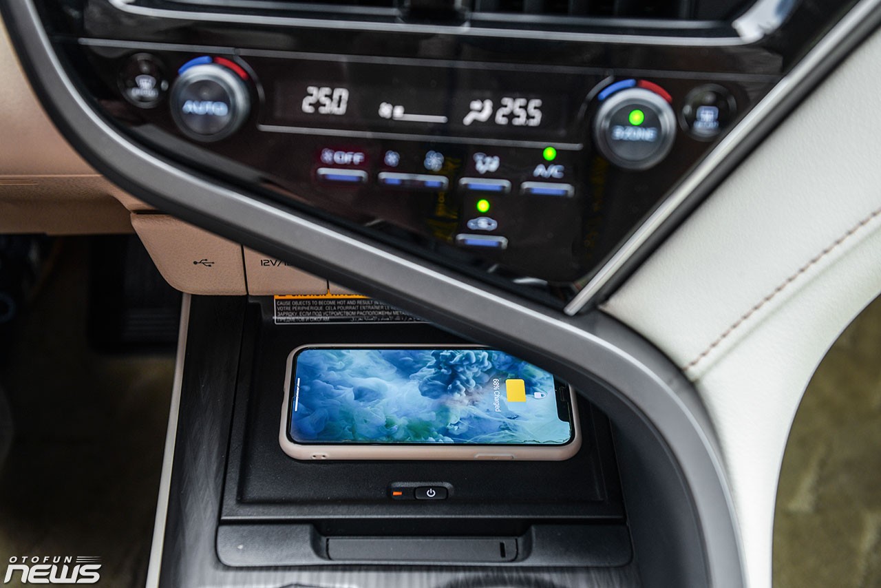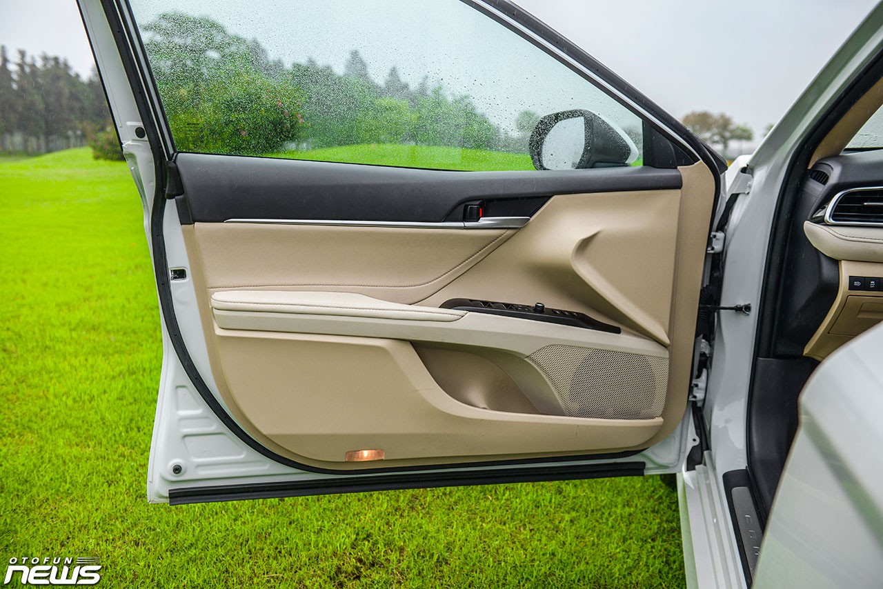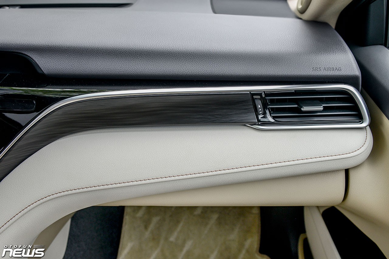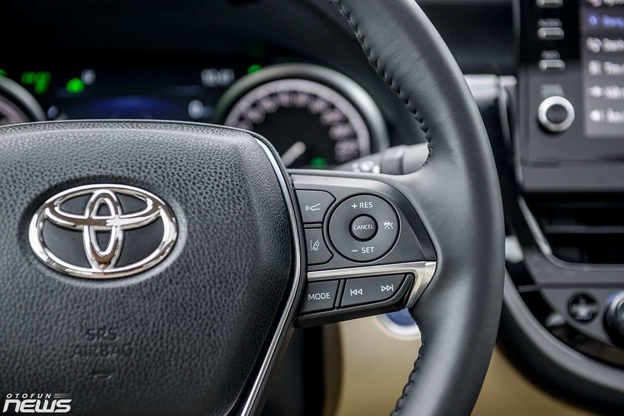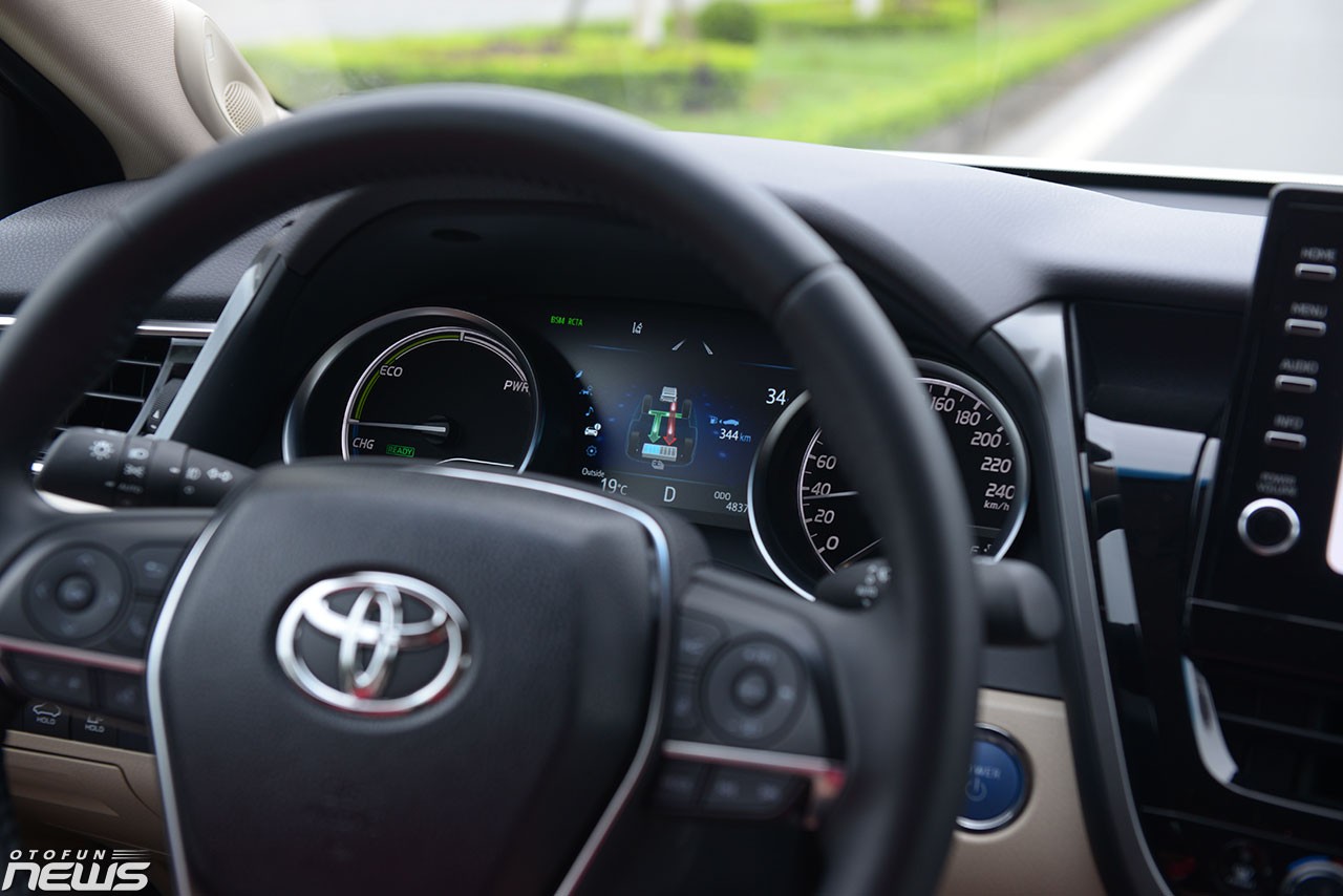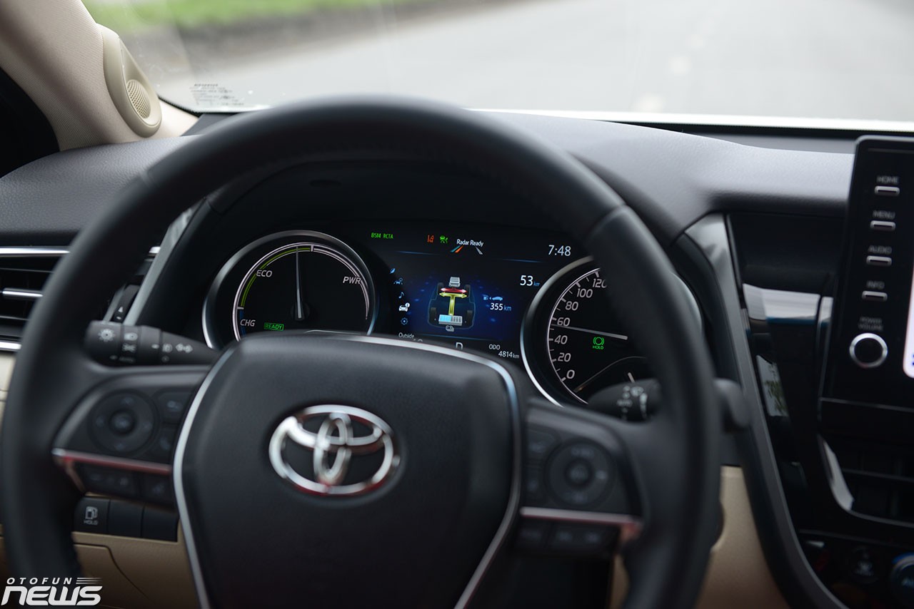 Nội thất Toyota Camry mang đến cảm giác tiện nghi, rộng rãi và sang trọng. Vô-lăng bọc da ba chấu chỉnh điện 4 hướng, tích hợp hàng loạt phím bấm chức năng. Đồng hồ hiển thị dạng analog với đồng hồ tốc độ bên phải và đồng hồ chỉ thị động cơ làm việc kết hợp màn hình hiển thị TFT 7 inch. Hệ thống giải trí sử dụng màn hình cảm ứng 9 inch, hỗ trợ kết nối bluetooth, Apple Car Play và Android Auto. Hệ thống này còn đi kèm dàn âm thanh 9 loa JBL. Một số tính năng đáng chú ý khác có thể kể đến như màn hình hiển thị lên kính lái HUD, cửa sổ trời, phanh tay điện tử, sạc điện thoại không dây chuẩn Qi, camera 360 toàn cảnh. |