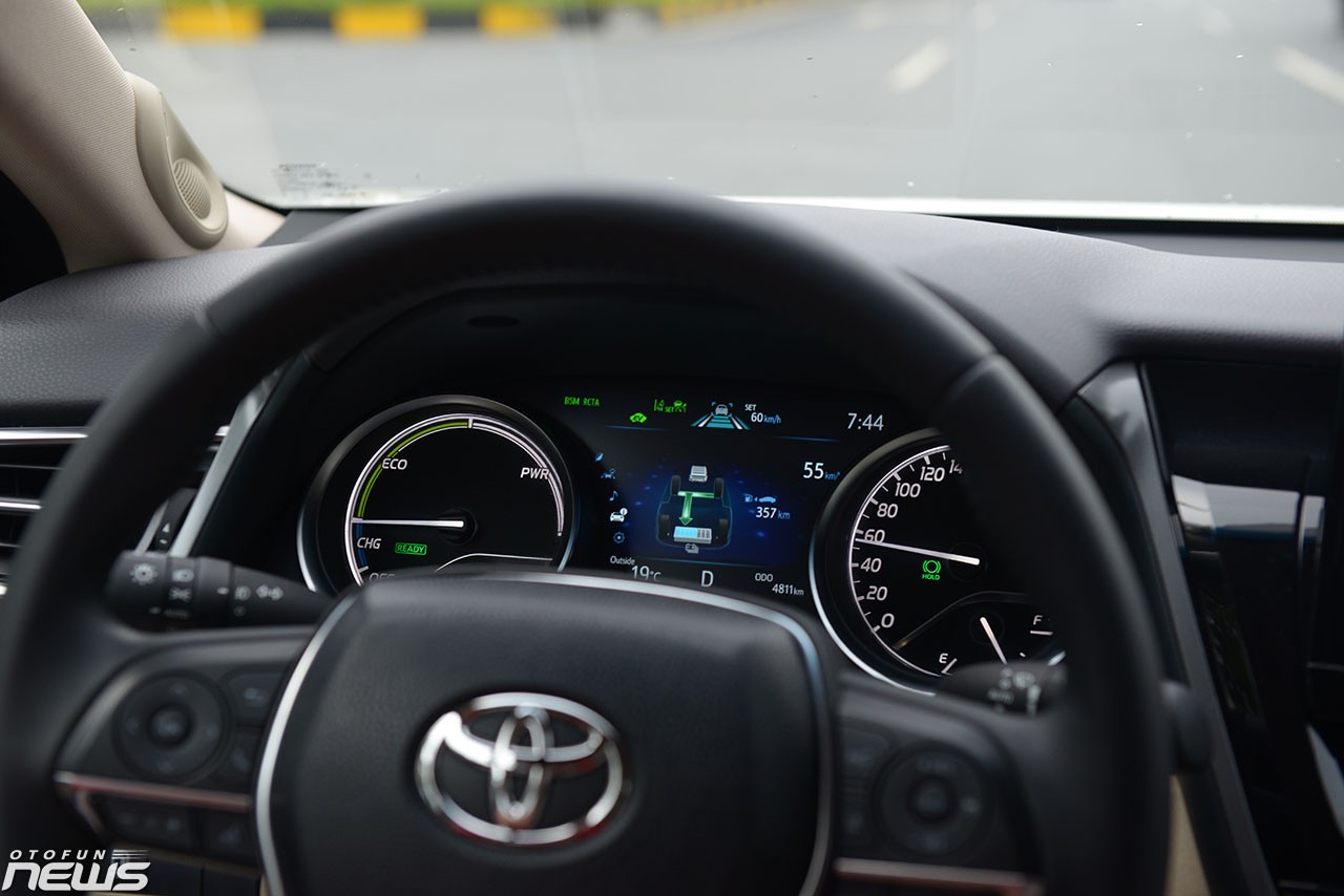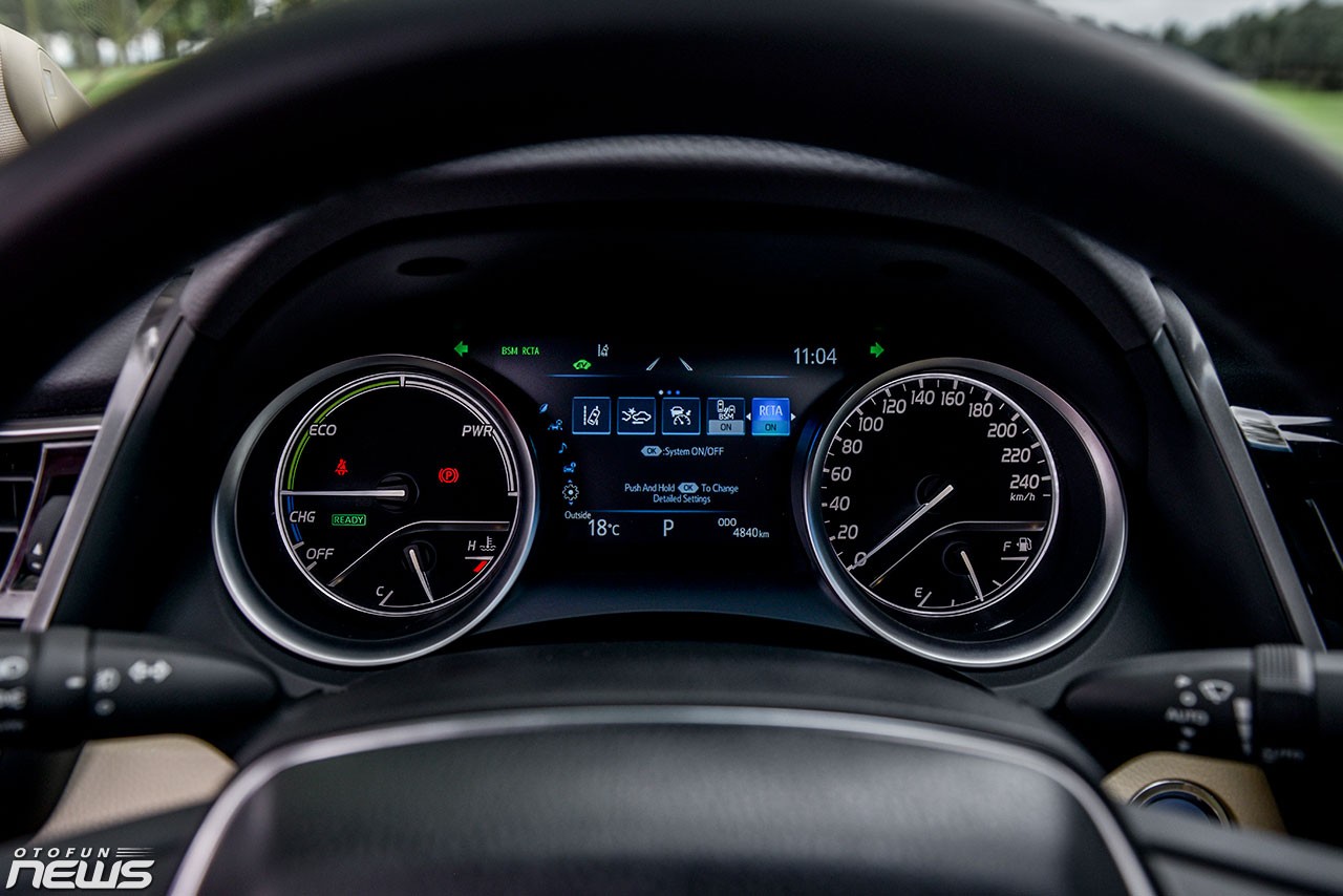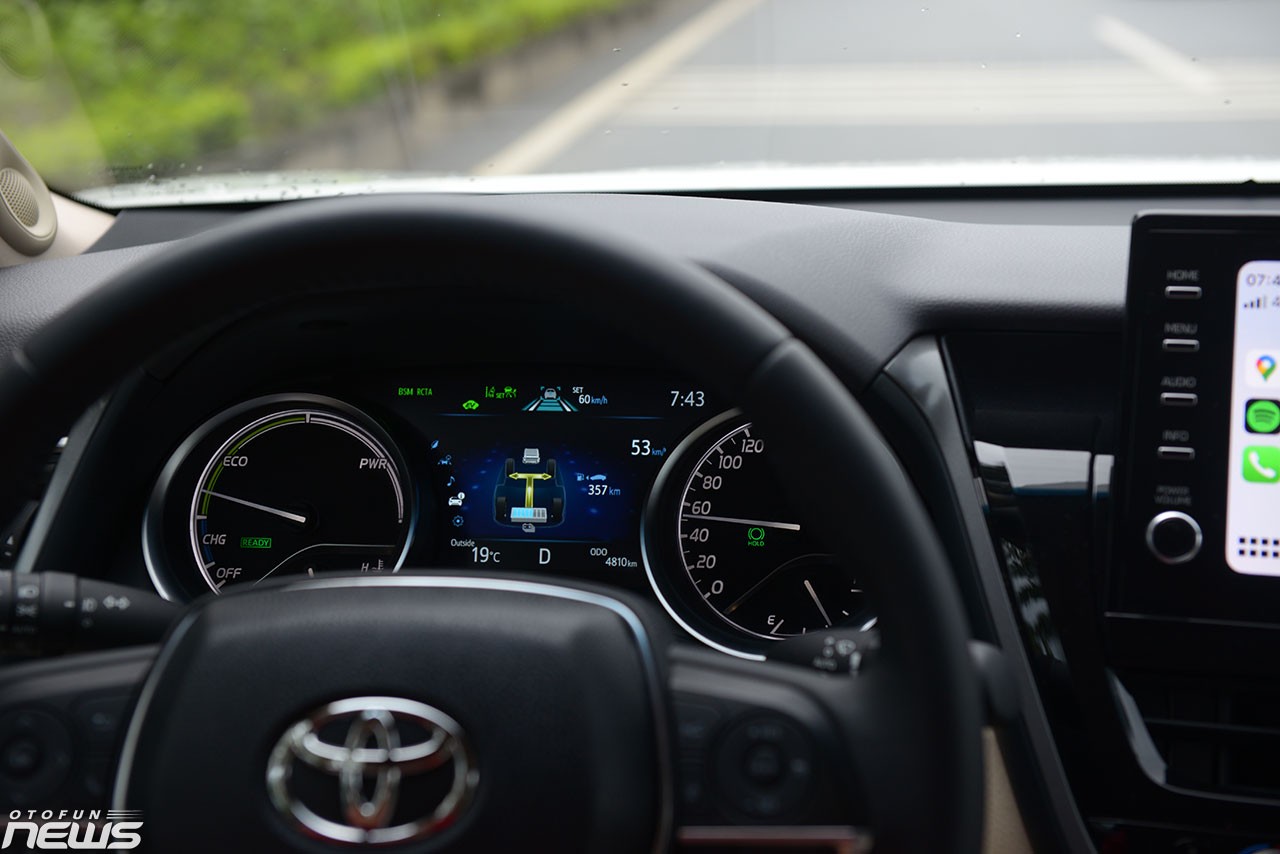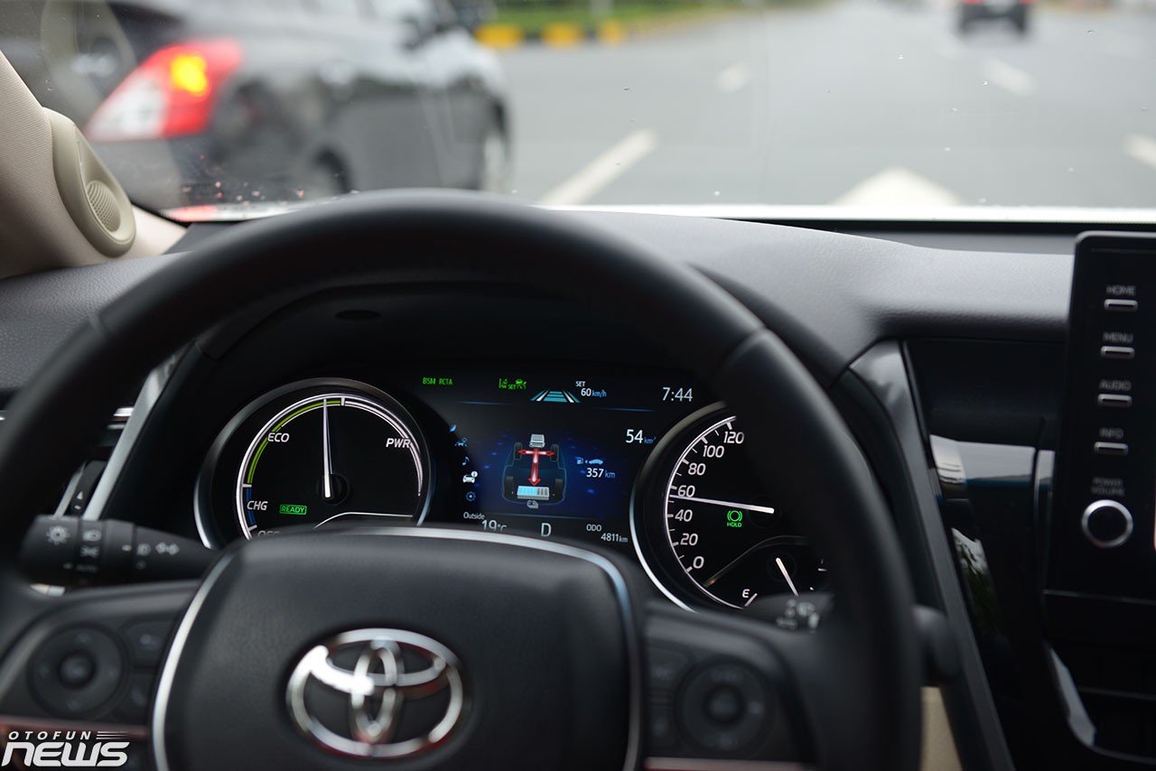 Không chỉ cung cấp năng lượng một cách hiệu quả khi xe tăng tốc hoặc cần đi nhanh, động cơ hybrid trên Camry 2.5HV cũng sẽ tự sạc trong quá trình di chuyển. Theo đó, bộ pin đặt phía dưới ghế sau sẽ được sạc khi tôi buông chân ga hoặc rà phanh hoặc khi đi xuống dốc. Màn hình năng lượng sẽ hiển thị các mũi tên màu xanh, chỉ thị trạng thái dòng năng lượng sinh ra từ động cơ hoặc động năng dư thừa từ bánh xe được truyền về bộ pin. Điều này vừa giúp sạc pin cho hệ thống hybrid, vừa giúp giảm tối đa lãng phí động năng tạo ra khi xe xuống dốc. Bằng cách này, động cơ hybrid trên Toyota Camry giúp xe tiết kiệm nhiên liệu đáng kể. Tổng kết hành trình trải nghiệm dài hơn 200km với cả ba điều kiện vận hành là nội đô, quốc lộ và cao tốc, mức tiêu thụ nhiên liệu của xe chỉ là 3,7 lít xăng cho quãng đường 100km. Có thể thấy, đây là con số thực sự thấp đối với một chiếc sedan cỡ D nặng gần 2 tấn. |