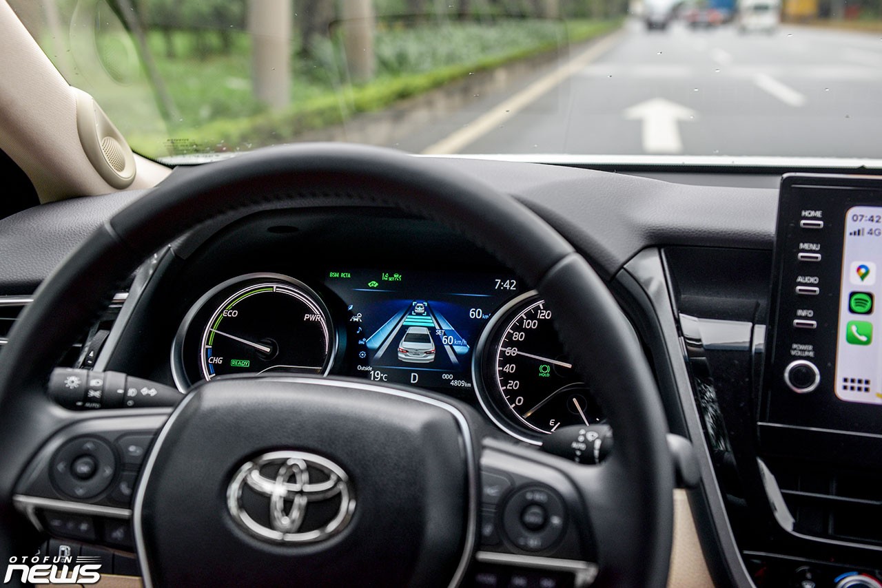 Thực tế trải nghiệm cho thấy, hệ thống an toàn TSS hoạt động hiệu quả, mang lại sự tự tin cho nhóm phóng viên. Trong đó, DRCC là tính năng mà chúng tôi cảm thấy hữu dụng nhất, đặc biệt đi trong phố. Khi được kích hoạt, chiếc Camry sẽ bám theo xe gần nhất phía trước với đúng tốc độ mà xe đó đang di chuyển ở mọi dải tốc độ. Điều này cho phép người lái chủ động trong việc kiểm soát tốc độ, hạn chế tối đa khả năng va chạm với xe phía trước do luôn giữ khoảng cách an toàn. Ở tốc độ cao, xe sẽ chạy theo tốc độ đã cài đặt và giữ một khoảng cách cố định với xe phía trước. Nếu xe phía trước tăng hoặc giảm tốc, chiếc Camry của mình cũng sẽ tăng tốc hoặc giảm tốc theo. Người lái có thể cài đặt khoảng cách so với xe trước với mức độ từ gần đến xa. Nếu xe phía trước đi quá xa, xe sẽ đi đúng tốc độ cài đặt. Hai tính năng hữu ích khác của gói công nghệ Toyota Safety Sense là Hỗ trợ giữ làn đường và cảnh báo lệch làn đường (LTA và LDA). Hệ thống camera quan sát sẽ nhận biết vạch phân chia làn đường. Sau đó, nếu phát hiện chiếc xe bị lấn làn, LTA nhận biết là tự đánh lái đưa xe về quỹ đạo đúng. Hiện đại hơn, LTA còn tính toán khoảng cách, giúp xe luôn đi chính giữa làn đường. Cả hai hệ thống này sẽ phát ra cảnh báo bằng hình ảnh và âm thanh cho người lái. Nếu phát hiện xe đi lệch làn, LDA sẽ can thiệp bằng cách tự động đánh lái, đưa xe về làn đường đúng. |
