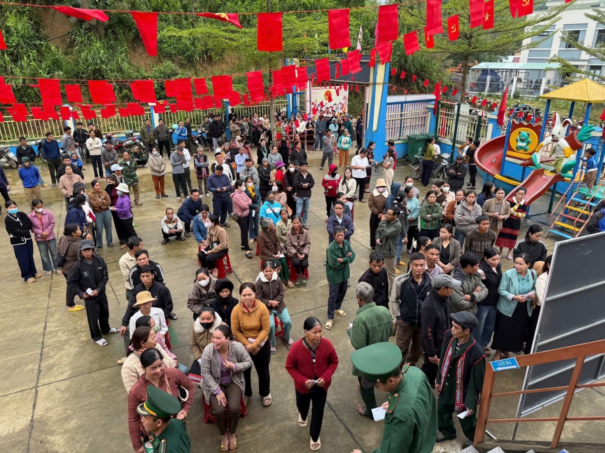 Sáng 15.3, mặt trời còn chưa ló khỏi dãy núi, xã Trà Đốc vẫn chìm trong lớp sương mỏng. Con đường dẫn vào trung tâm xã bắt đầu rộn ràng hơn thường ngày. Từng nhóm cử tri từ các lối nhỏ trên sườn núi men xuống, áo quần chỉnh tề đi bầu cử.