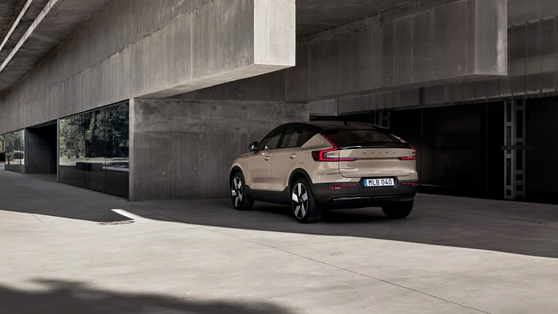 | Volvo EC40 được che chắn kỹ phần đuôi xe. |