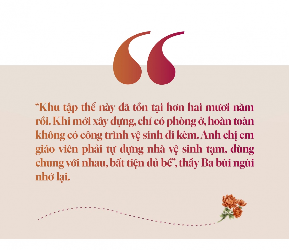 Có lẽ vì đã gắn bó với giáo dục nơi đây quá lâu, thầy Nhữ Văn Ba thấu hiểu từng khó khăn, vất vả và cả những tâm tư, nguyện vọng của giáo viên đang sinh hoạt tại khu tập thể vùng khó.